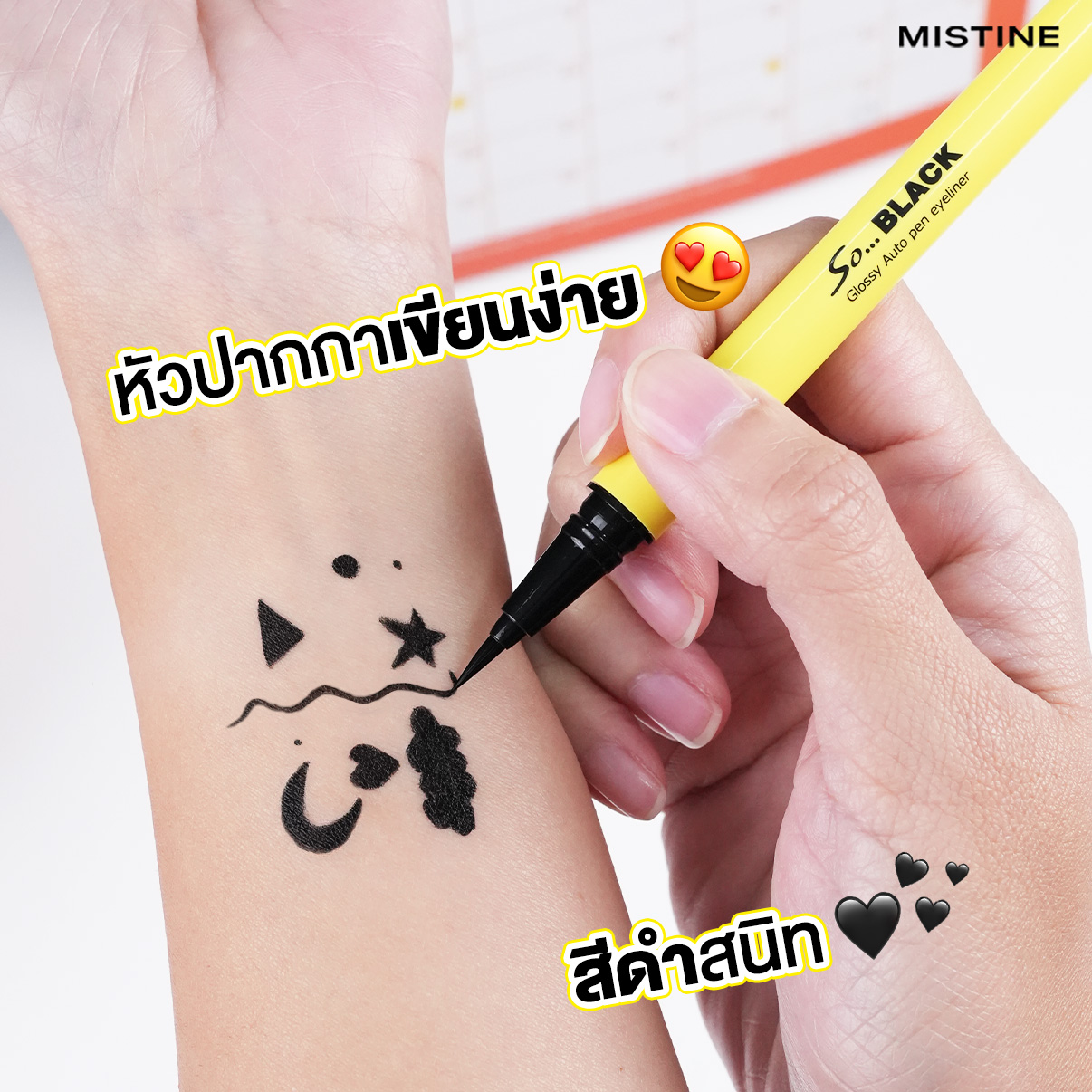 MISTINE SO BLACK AUTO PEN EYELINER เป็นอายไลเนอร์แบบ Auto Pen ที่เน้นการใช้งานจริง เส้นสีดำคมชัด เขียนลื่น ควบคุมง่าย เหมาะกับคนที่อยากกรีดตาให้สวย โดยไม่ต้องใช้เทคนิคเยอะ