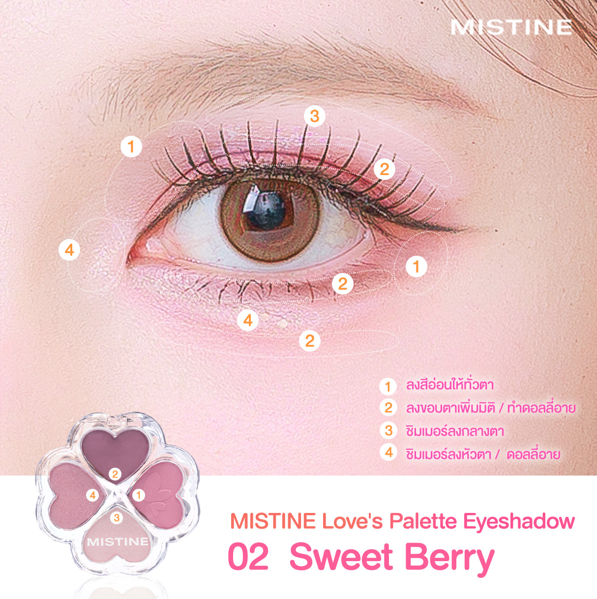 พาเลทหัวใจมิสทิน เลิฟ พาเลท อายแชโดว์ ที่รวม 4 เฉดสีไว้ในตลับเดียว มีทั้งแมตต์และชิมเมอร์ fallout น้อยมาก ให้สีสวย เกลี่ยง่าย สีชัดตั้งแต่ปาดแรก จะลุคไหนก็ตาสวยฉ่ำได้ครบจบทุกลุค ติดทน กันน้ำกันเหงื่อสุดๆ เหมาะสำหรับทุกสภาพผิว รวมถึงผิวที่แพ้ง่าย ขนาดกะทัดรัด พกพาง่าย ใช้งานสะดวก
